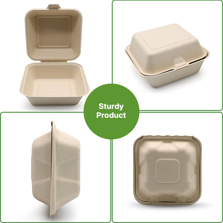 Caja de papel de hamburguesa marrón desechable biodegradable de 6, 7 y 8 pulgadas, hecha de pulpa de bagazo de caña de azúcar