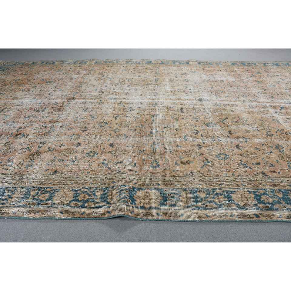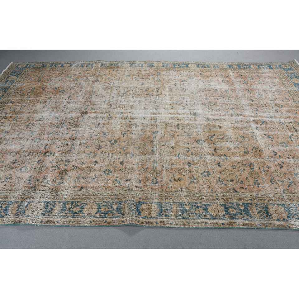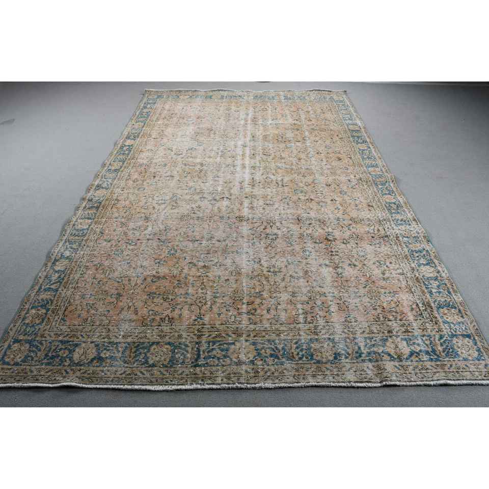 Alfombra de 6,7x10,5 pies, alfombra turca vintage, alfombra de lana con motivos de plantas y árboles azules