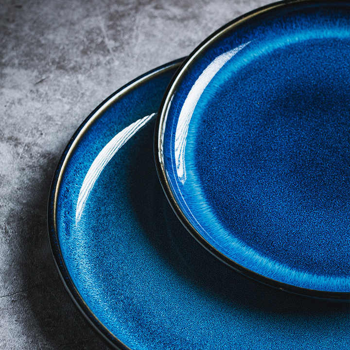 Platos de Porcelana Azul de Estilo Japonés Moderno y Ecológico de 6, 8, 10 y 12 Pulgadas, con Esmalte de Horno Reactivo, para Cena y Sopa