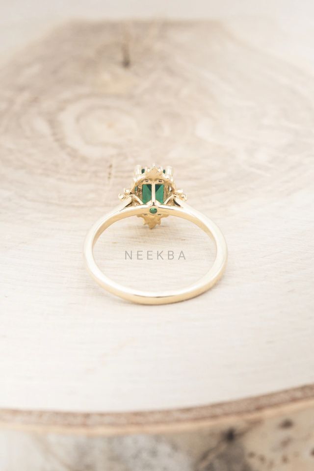 6*8mm forma de Esmeralda laboratorio cultivado Esmeralda 10K anillo de oro sólido forma de Esmeralda anillo de compromiso de oro anillo solitario verde