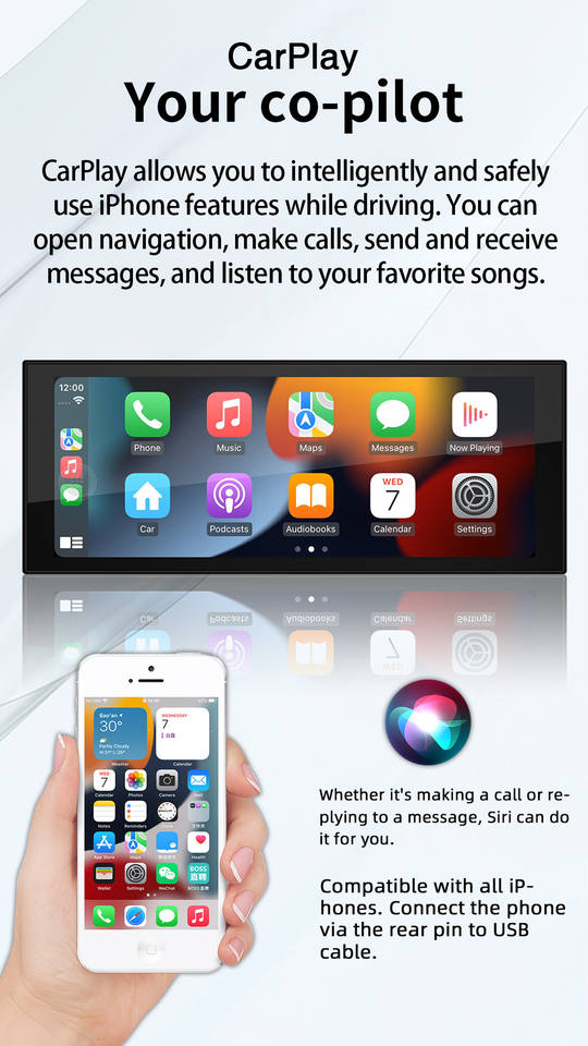 CarPlay, Enlace espejo, Android auto, MP3/MP4, Pantalla táctil, DVD/VCD, Visor de imágenes, Sintonizador Radio, Cargador de coche, Control remoto, Amplificador, 3D mapa, Cámara de copia de seguridad, Guía de voz, Control del Volante, Pantalla dividida, Carretera de planificación, Par de torsión, Invertir la ayuda, En directo/aparcamiento, En directo/Live el tráfico, MultiMedia apoya, De modo Dual, sistema de navegación, Velocidad de alerta, Brújula digital, Construir-en el micrófono, La voz de interacción, OtrosFunción