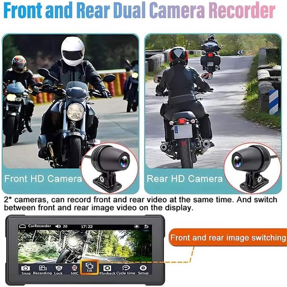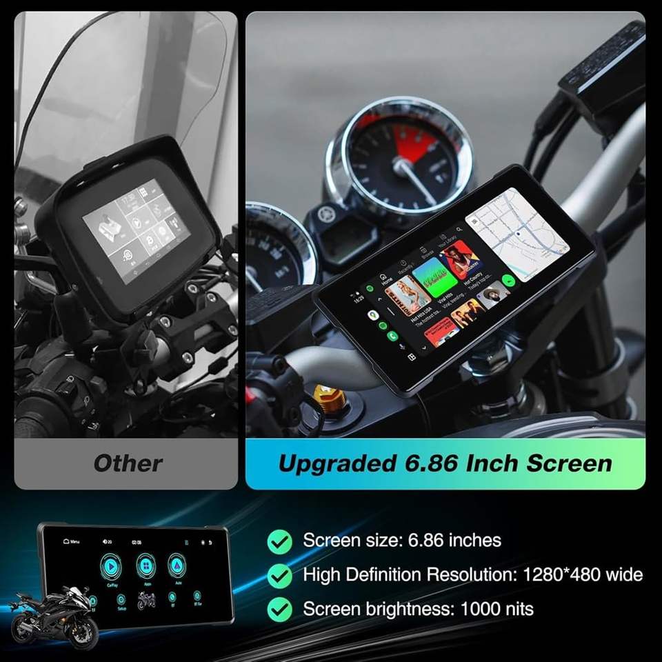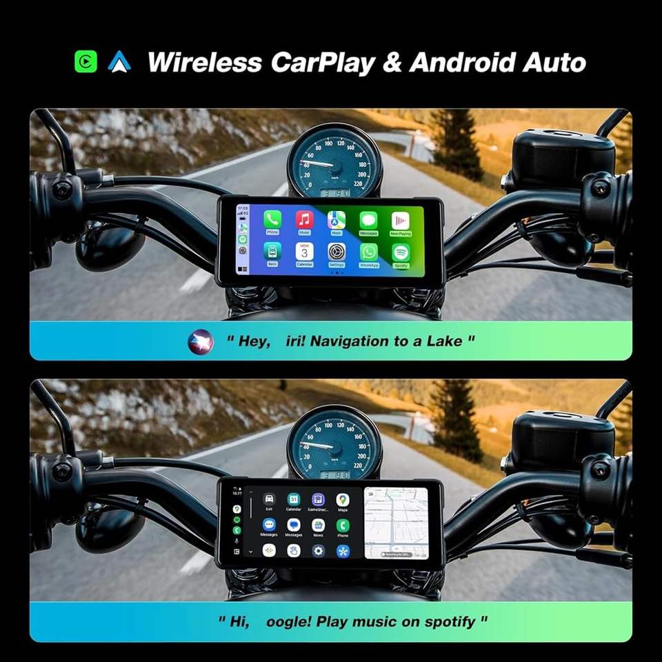 Navegador Inalámbrico para Motocicleta de 6.86 Pulgadas con CarPlay y Android Auto, Cámara de Doble Lente Resistente al Agua IPX7, Compatible con ODM/OEM