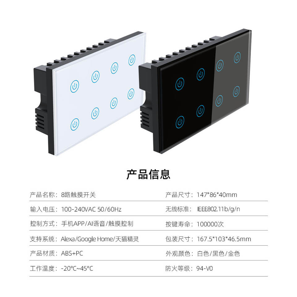 Product name:WiFi Wall Light Switch 6 8 Gang