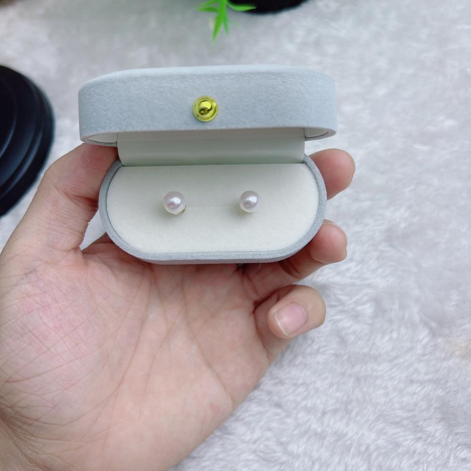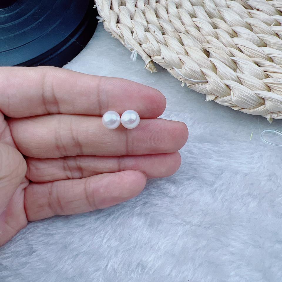 Pendientes de Perlas Akoya de Agua Dulce de 6-8 mm, Forma de Bombilla Pequeña, Espejo, Luz, Blanco Exquisito, Aguja de Plata Pura, Perfectamente Redondos