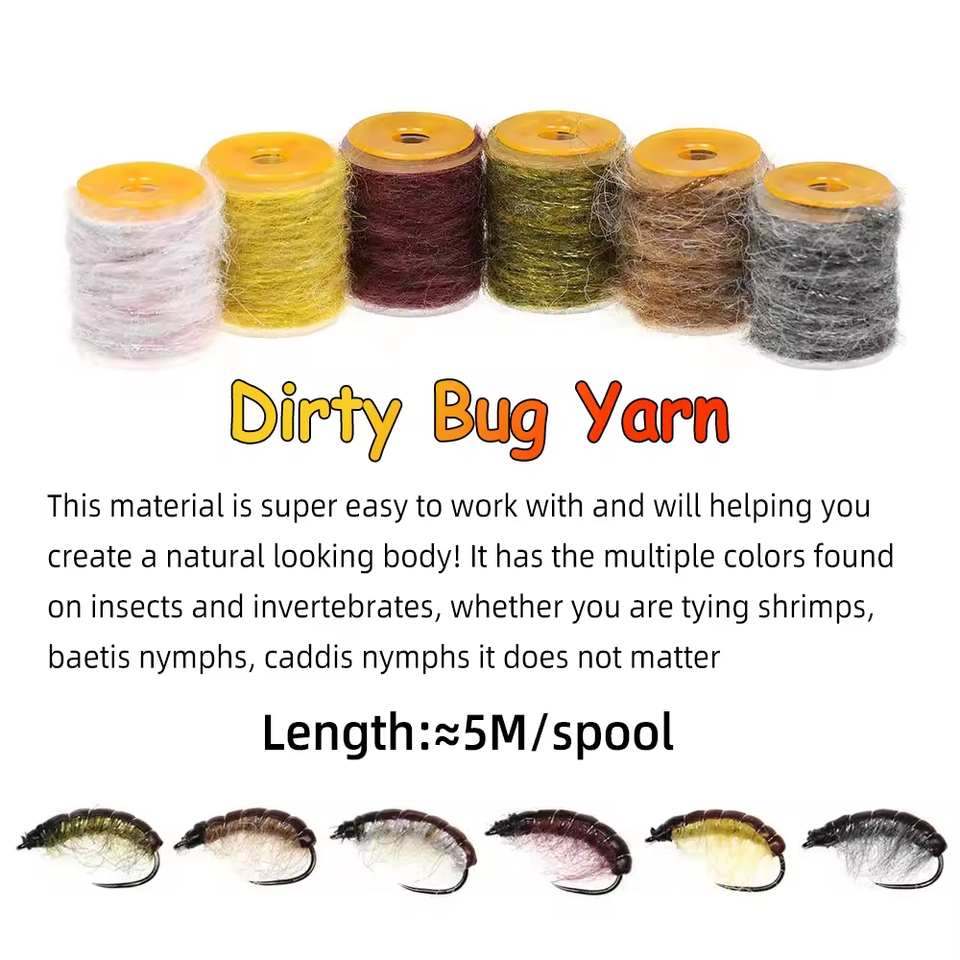 6 colores/juego de hilo de insecto sucio hilo de doblaje moteado con camarones Baetis Caddis ninfas señuelo para pesca con mosca Material de atado