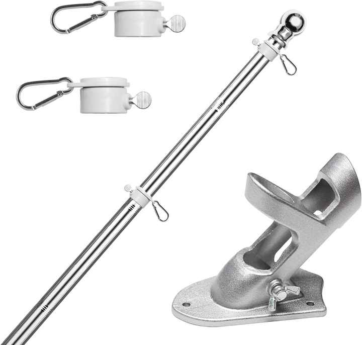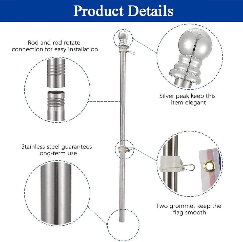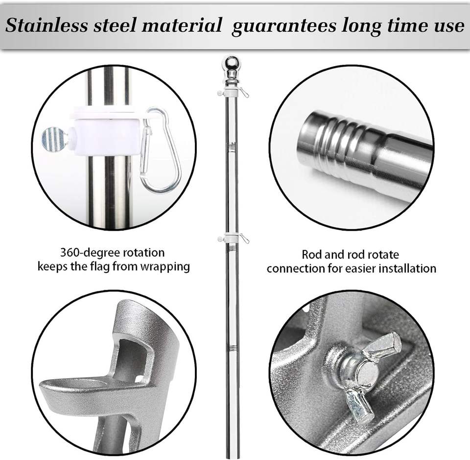 Mástil de Bandera de Acero Inoxidable Personalizable de Estilo Moderno Plateado de 6 Pies, Giratorio Sin Enredos, Resistente a la Intemperie y al Óxido para Promocionales