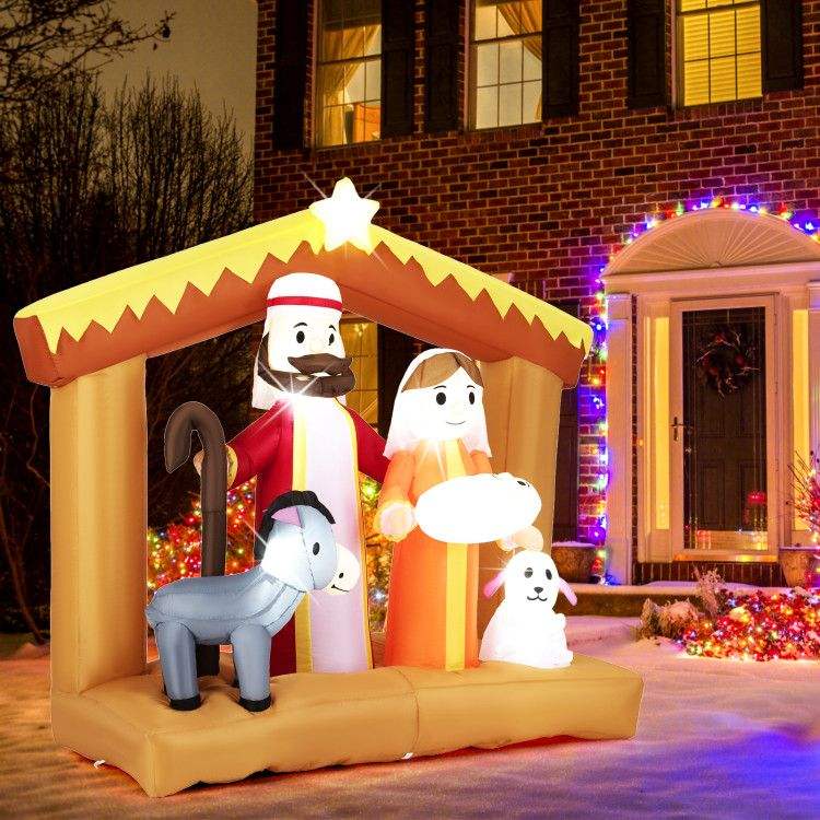 Escena de Natividad Navideña Inflable de 6 Pies, Decoración para Exteriores con Luces LED Integradas para Decoración de Jardín Navideño