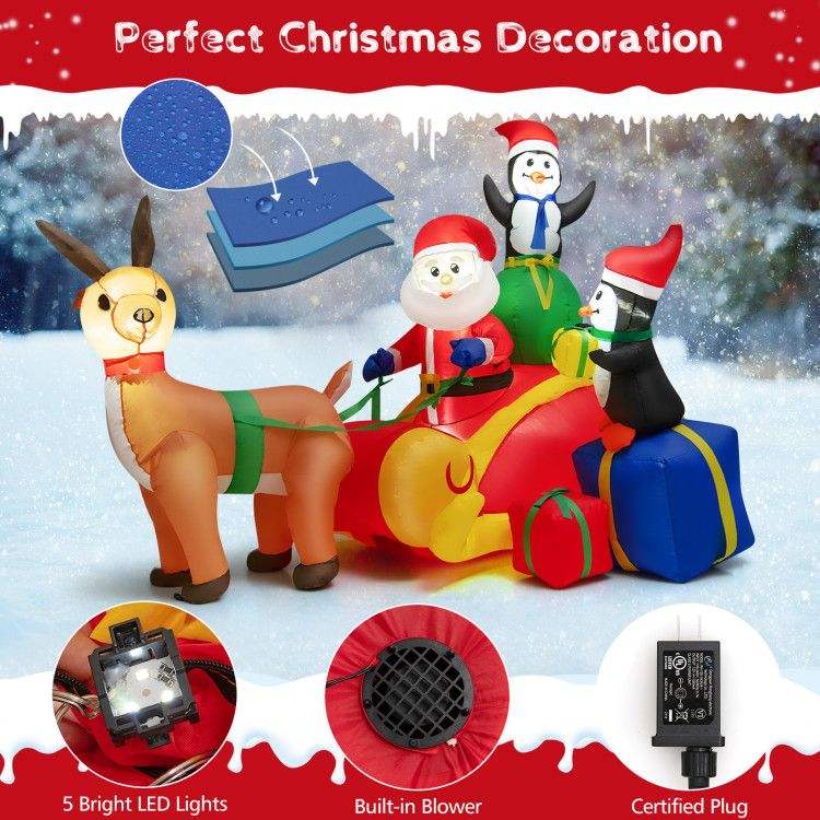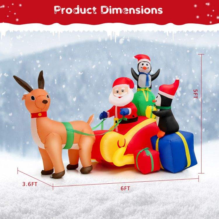 Decoración Navideña Inflable para Exteriores de 6 Pies de Largo con Luces LED Integradas y Soplador Impermeable