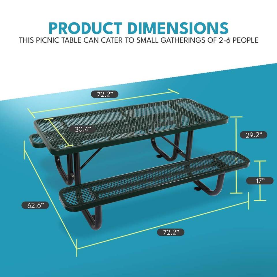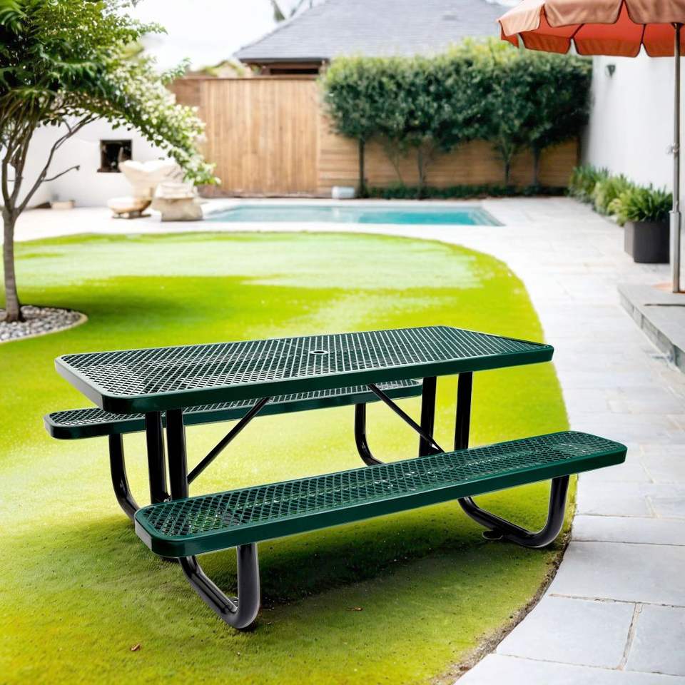 Mesa de Picnic Rectangular de Acero para Exteriores de 6 Pies con Poste para Sombrilla