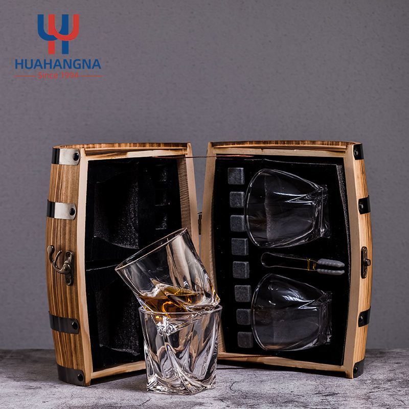Nombre del Producto:Copas de whisky de cóctel retorcidas en caja de regalo de barril de madera