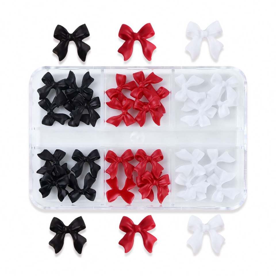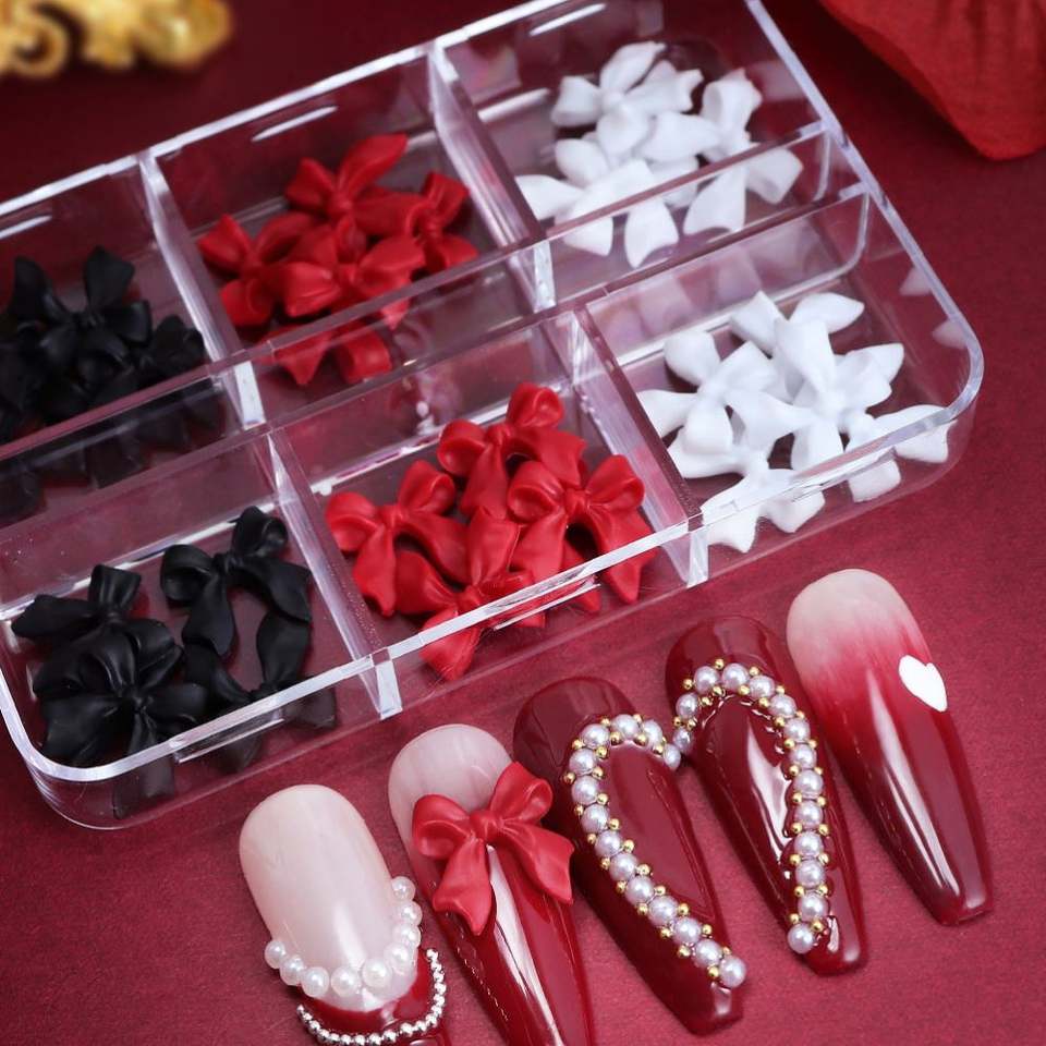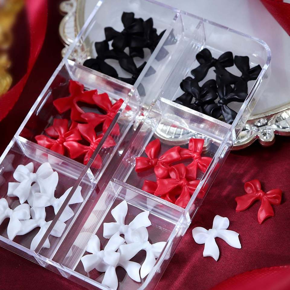 6 Compartimentos, 30 Piezas de Adornos para Uñas con Lazo Rojo y Blanco, Accesorios Coreanos, Decoración de San Valentín, Accesorios Kawaii para Diseño de Manicura