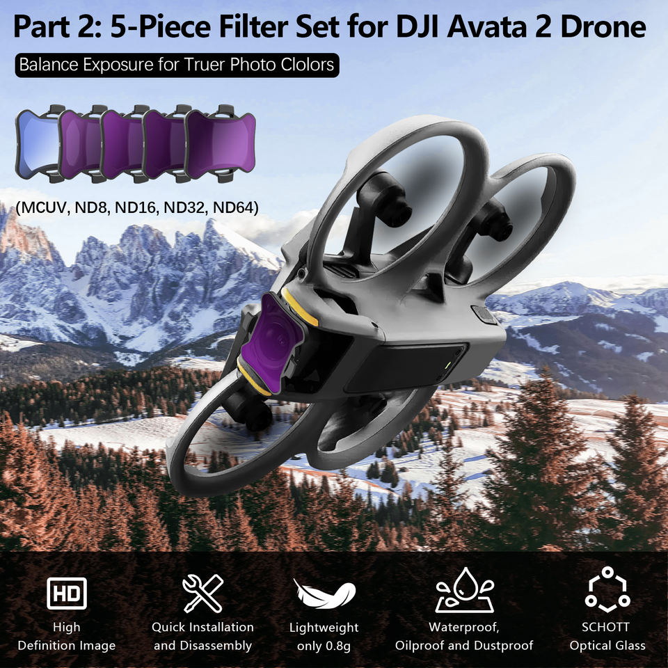 Kit de accesorios 6 en 1, funda protectora de una sola capa, accesorios para drones resistentes, estuche rígido portátil para DJI Avata 2