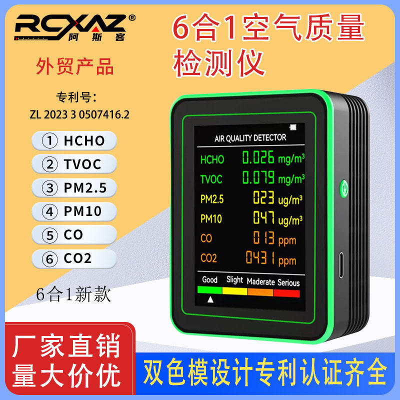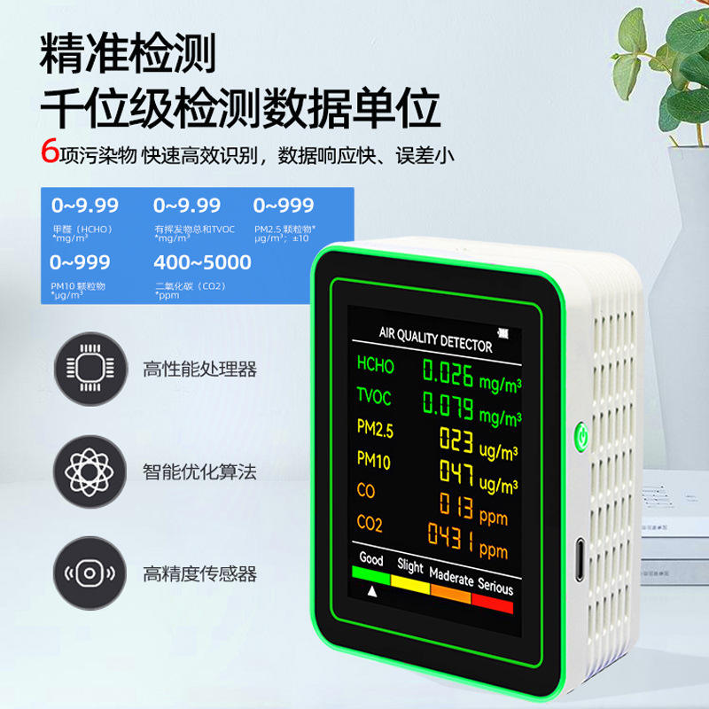 6 In 1 Air Quality Detector ZN MT26 CO Formaldehyde TVOC PM2.5 PM10 CO2 Monitor LCD Display For Home Renovation