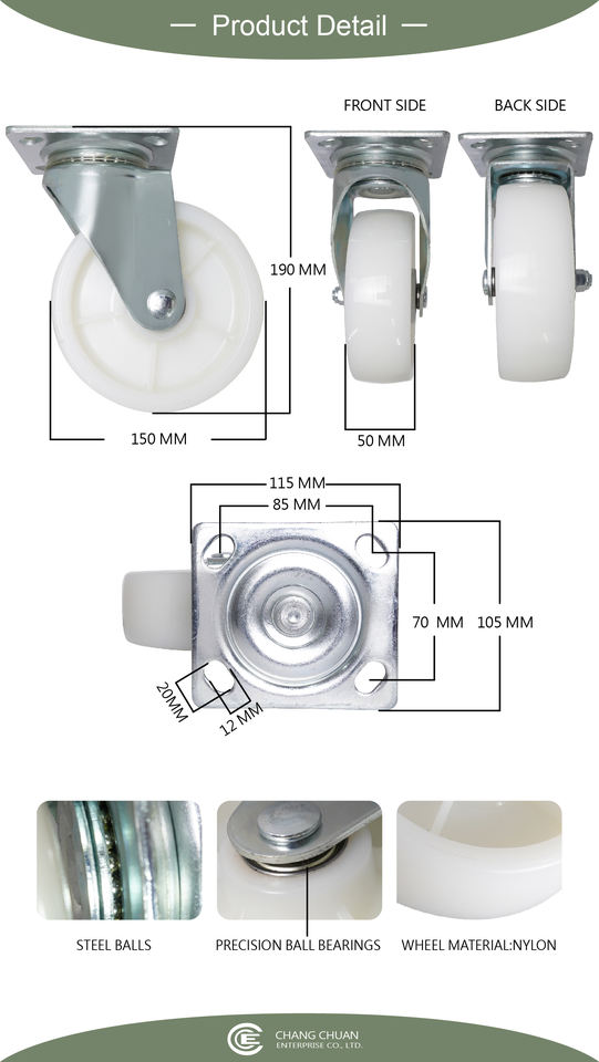 Ruedas giratorias de 6 pulgadas, peso ligero