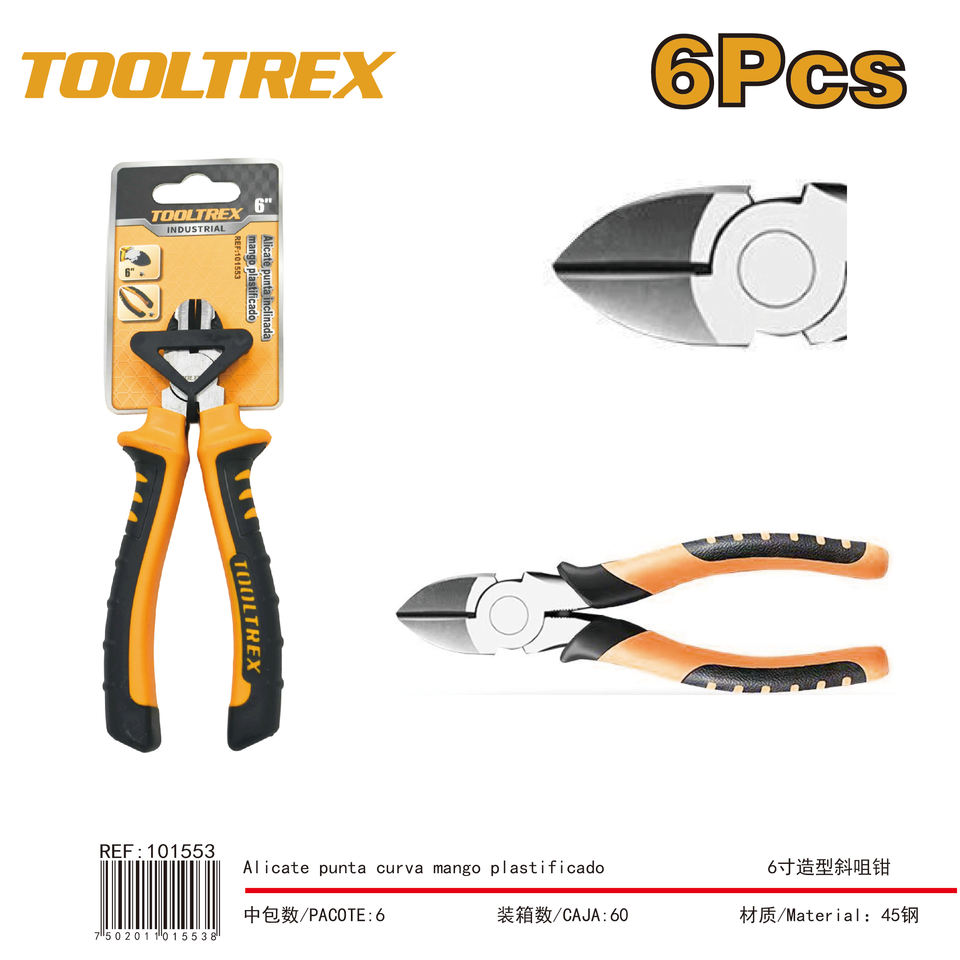Alicates diagonales de acero al carbono de 6 pulgadas, alicates de corte y agarre de Punta larga y punta de aguja para mango de PVC/plástico DIY
