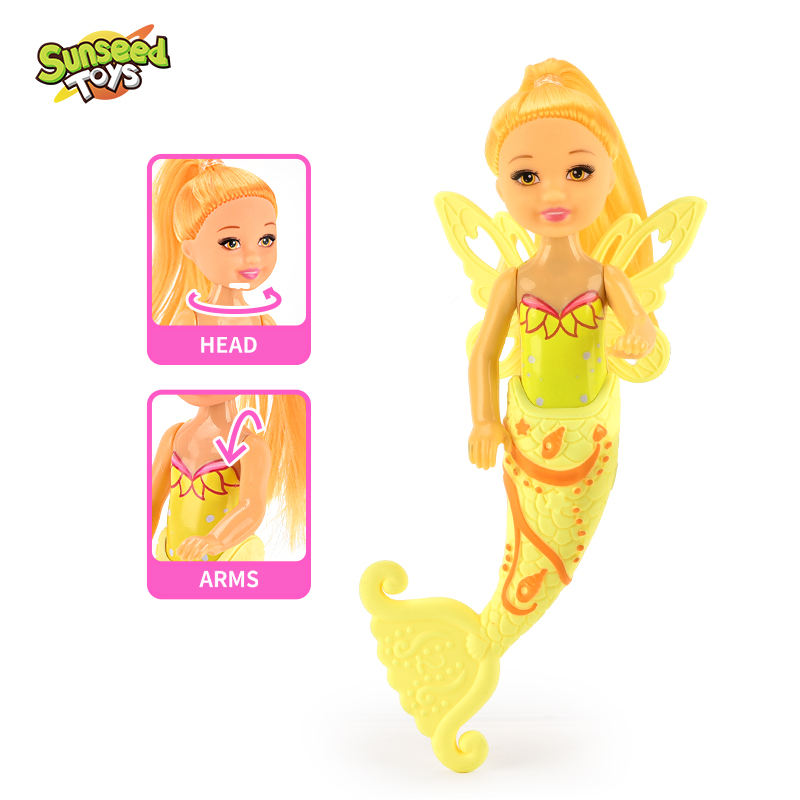 Muñeca de Dedo SUNSEED de 6 Pulgadas con Articulaciones Flexibles, Diseño de la Sirenita, Cola Móvil, para Niños, Regalo Promocional