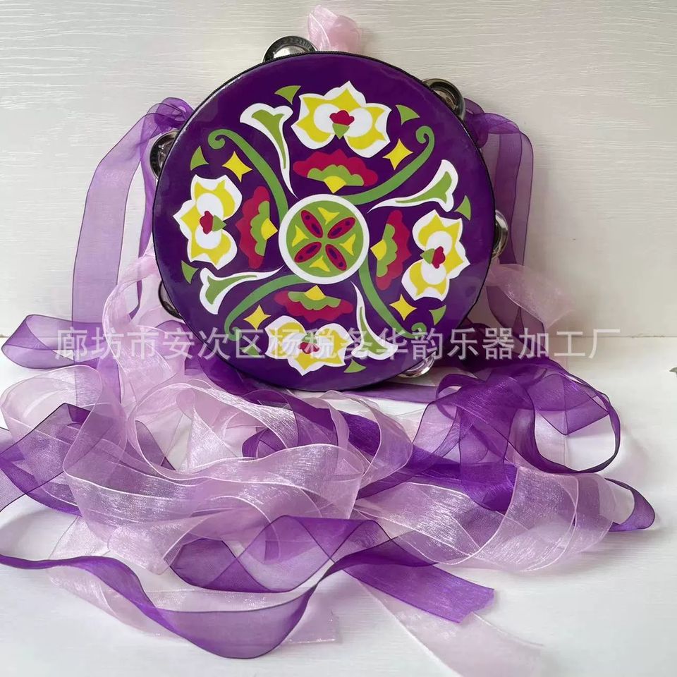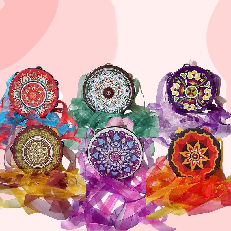 Tambor de mano Orff de 6 pulgadas, instrumento de percusión Dunhuang Flying Apsaras con cinta exótica para presentaciones de danza