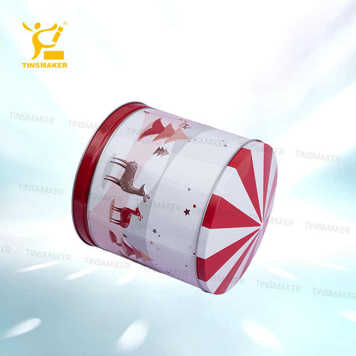 Caja de lata de Metal de hojalata redonda de 6 pulgadas para aperitivos, carrusel de caramelo, música, sublimación de lata de galletas de aluminio para almacenamiento de aperitivos con bisagras