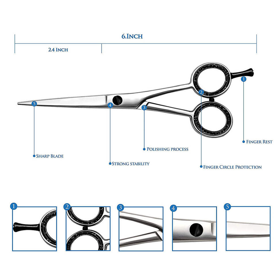Tijeras de Corte de Pelo Profesionales de 6 Pulgadas, Acero Inoxidable 4Cr13, Mango Mediano, para Diestros, para Uso en Salón y Barbería