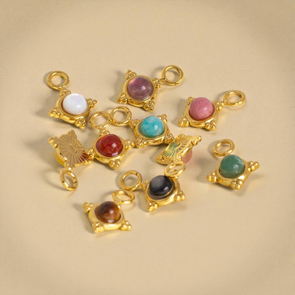 African Jade, Amazonite, Amethyst, Black ObsidianPiedra principal