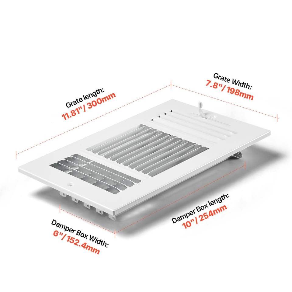Paquete de 6 Rejillas de Ventilación de Hierro para HVAC de 6 x 10 Pulgadas, Rejillas de Piso y Ventilaciones de Techo y Pared de 3 Direcciones, Resistentes al Óxido, para Uso en el Hogar/Oficina