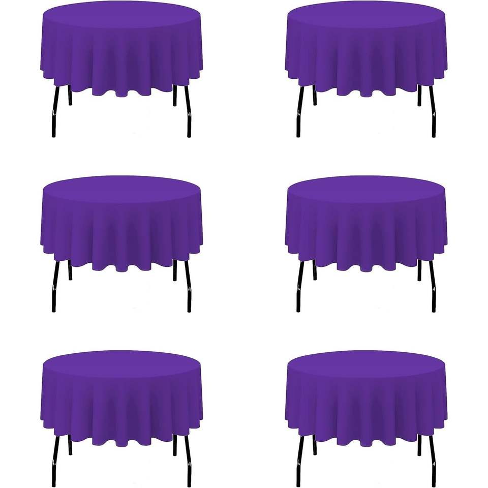 Paquete de 6 Manteles Morados de 70 Pulgadas, Tela de Poliéster Tipo Lino, Lavables, para Mesas de 30 y 54 Pulgadas, Cubiertas Circulares para Mesa