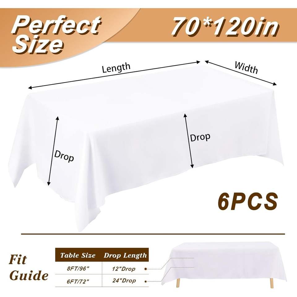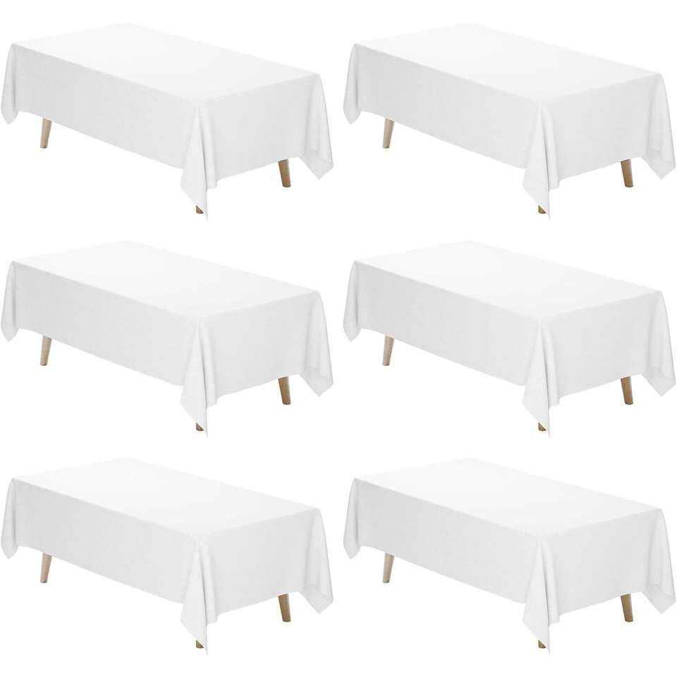 Paquete de 6 Manteles Rectangulares de Poliéster Blanco de 70 x 120 Pulgadas, Cubiertas Rectangulares para Mesa de Fiesta, Mantel Elegante