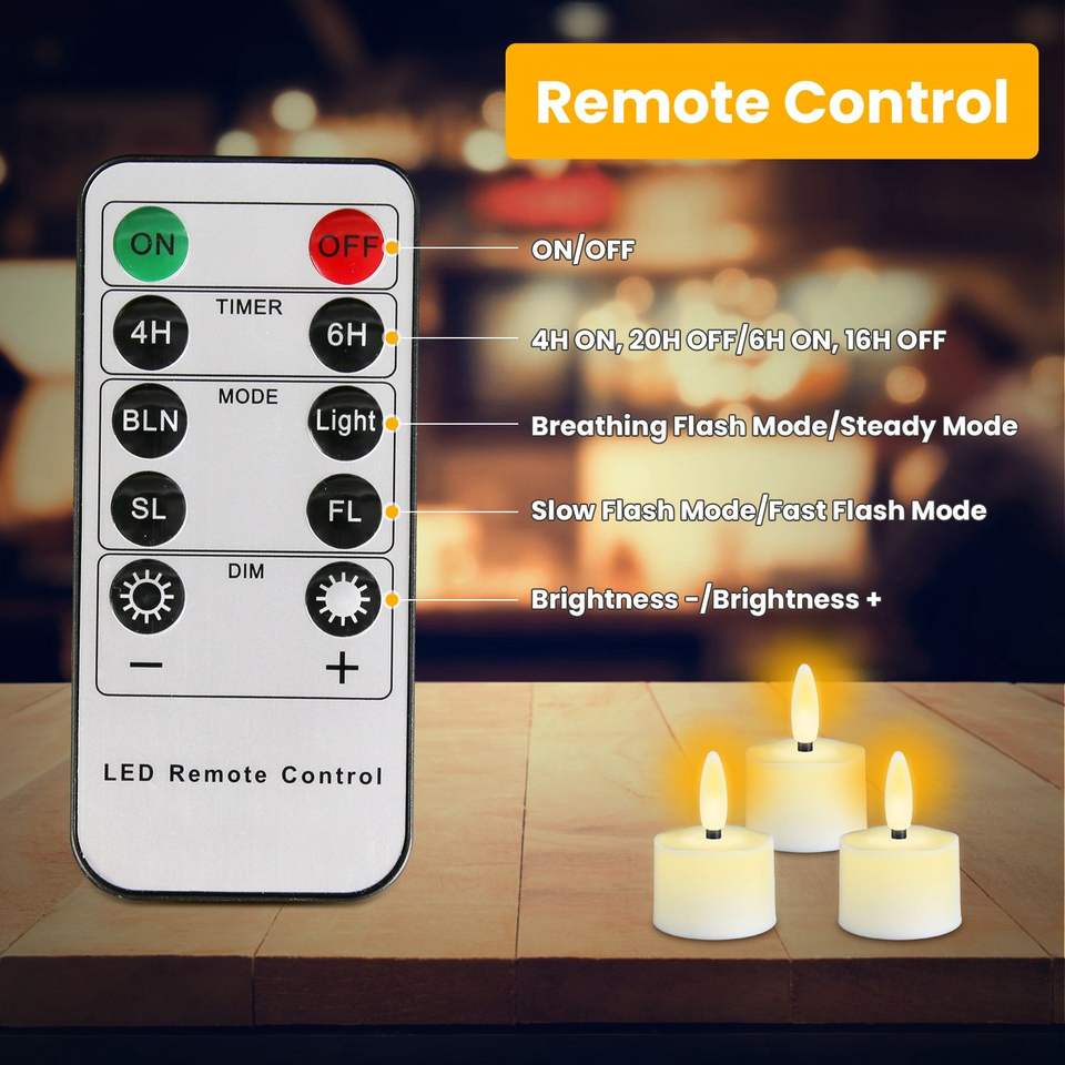 Paquete de 6 Velas LED Recargables sin Llama con Efecto de Parpadeo, Base de Carga, Control Remoto y Temporizador para Decoraciones de Halloween y Navidad