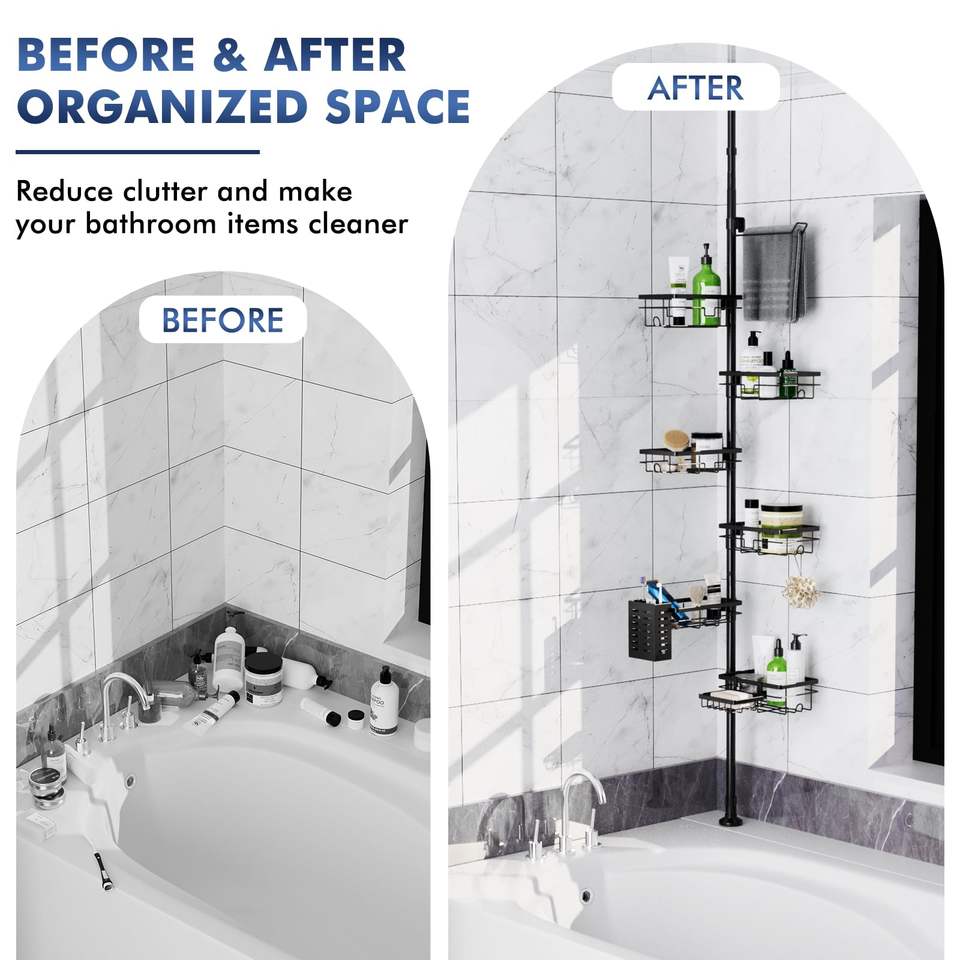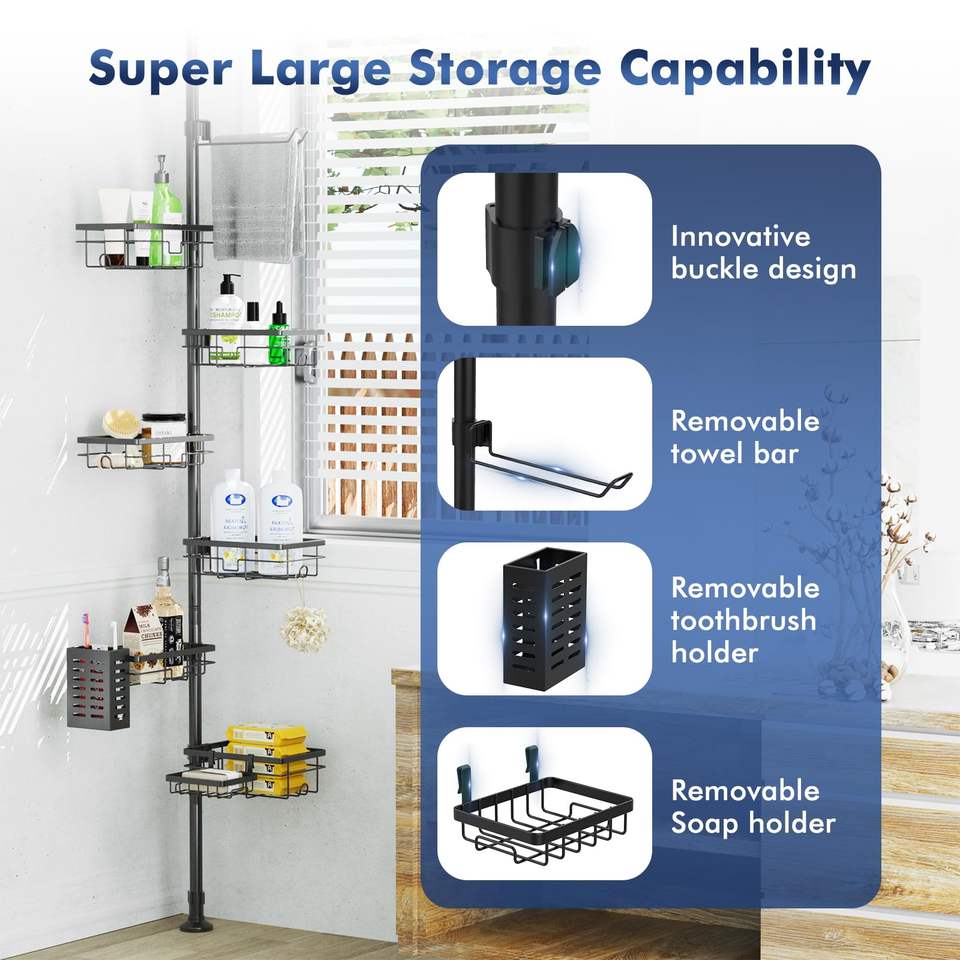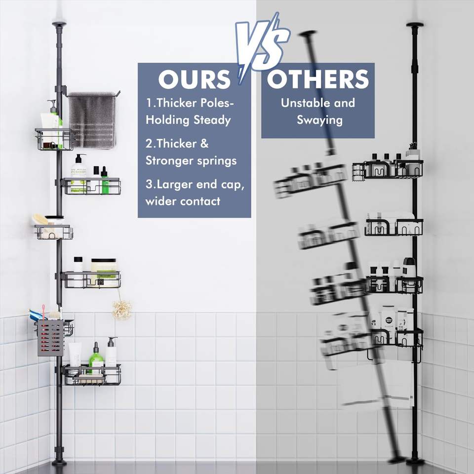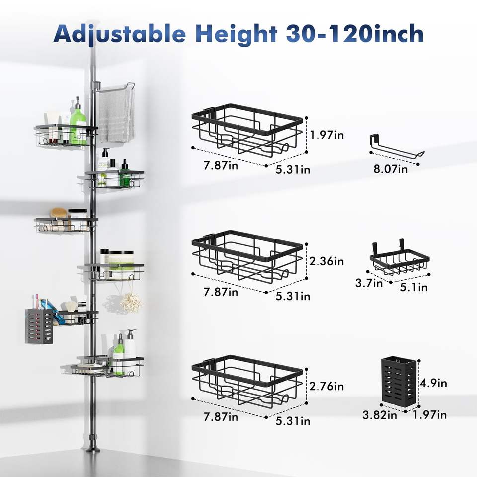 Paquete de 6 estantes de esquina de metal a prueba de herrumbre con estante de ducha ajustable de 30-120 pulgadas que incluye barra de toalla adicional y jabonera para baños