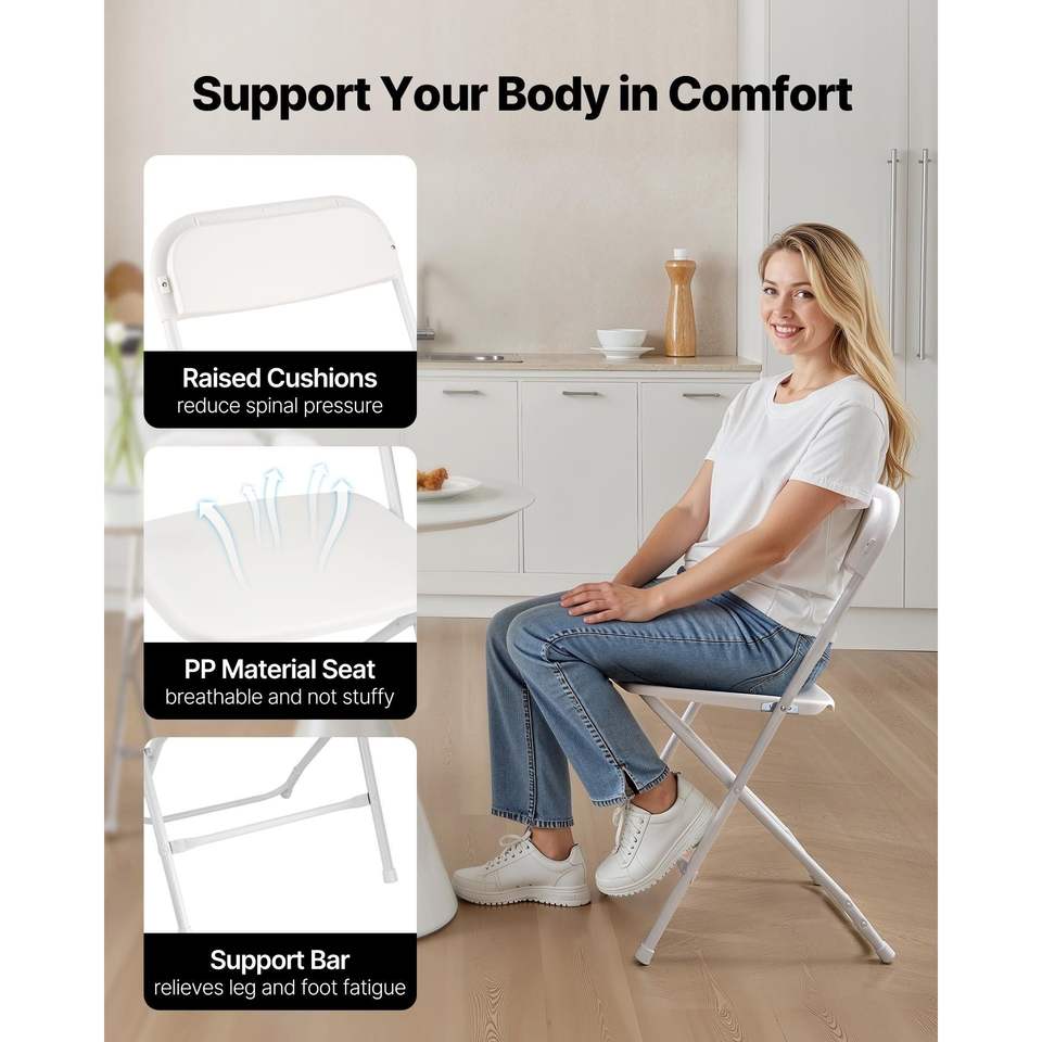 Paquete de 6 Sillas Plegables Portátiles Apilables para Interiores con Estructura Metálica Resistente y Mesa Plegable de Plástico