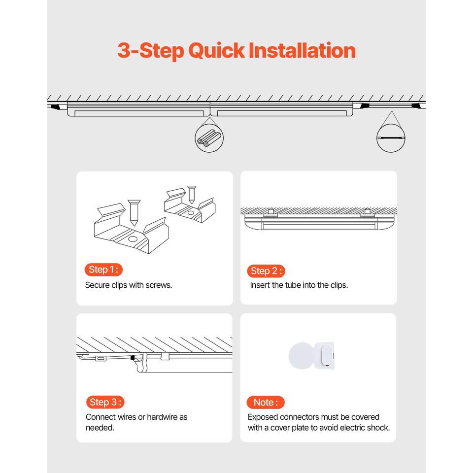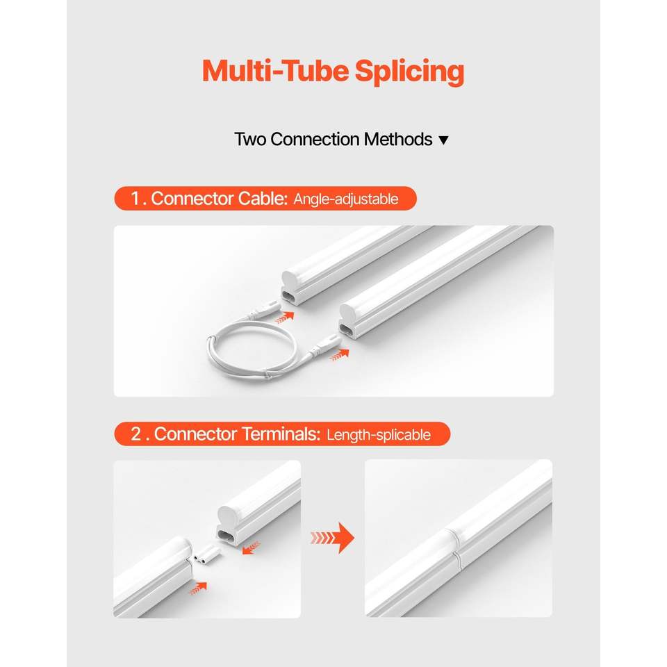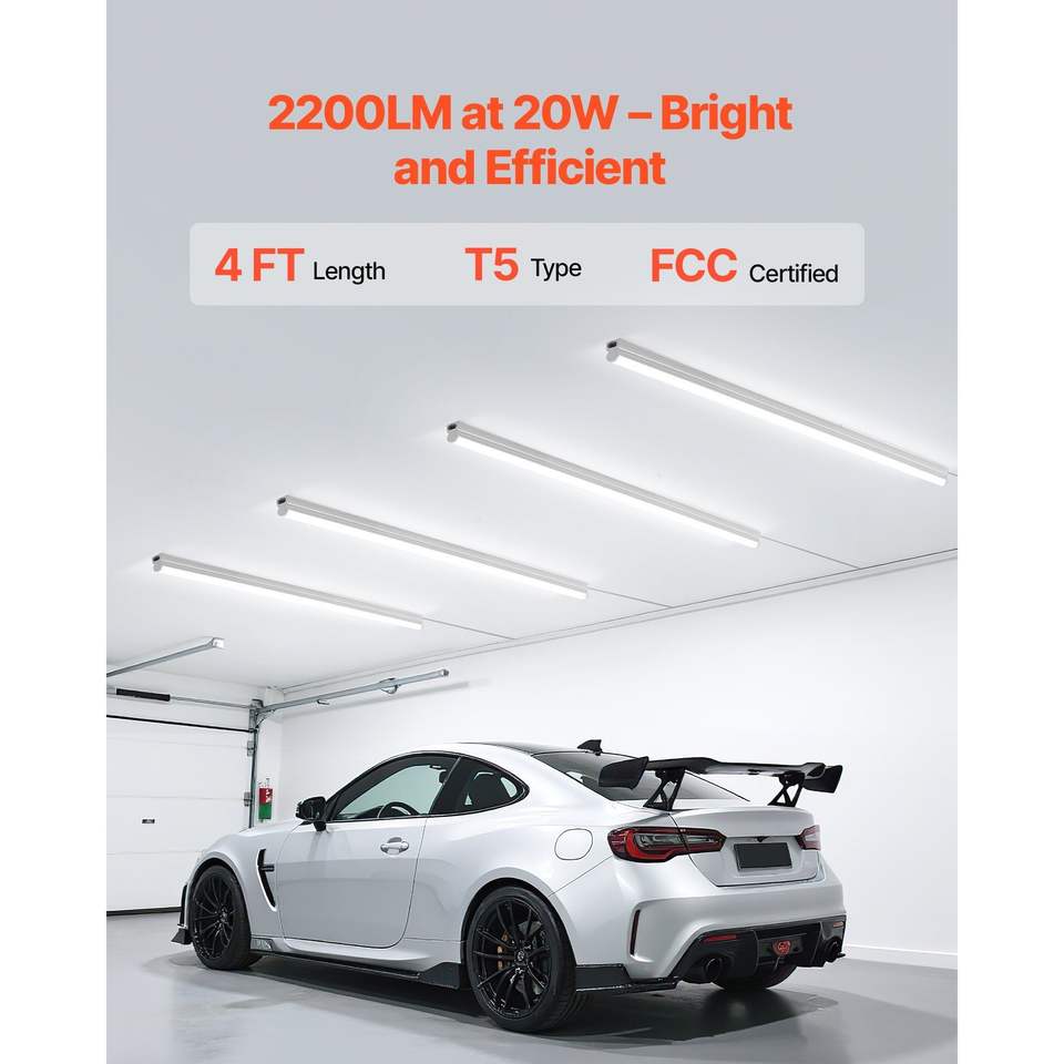 Paquete de 6 Lámparas LED T5 Integradas de 4 Pies, 2200lm, 6500K, Conectables, con Interruptor Eléctrico de Encendido/Apagado, con Cable