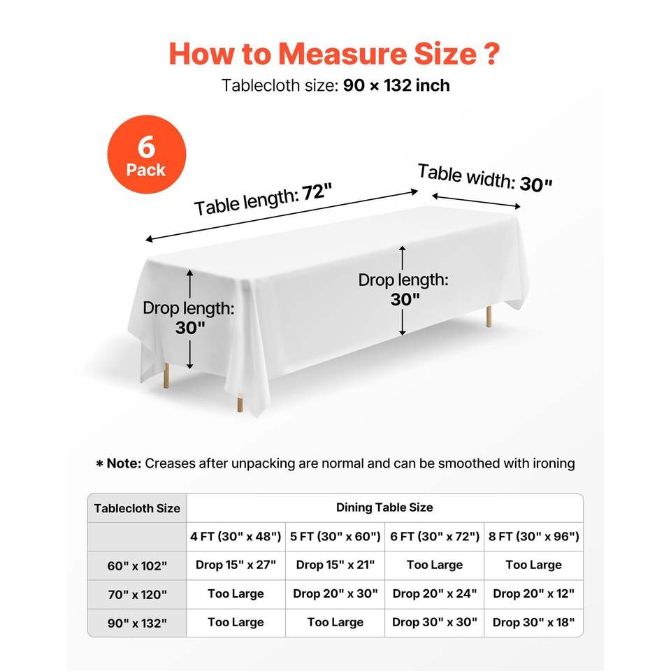 Paquete de 6 Manteles Rectangulares Blancos de 90 x 132 Pulgadas, Reutilizables, Lavables a Máquina, Resistentes a las Arrugas