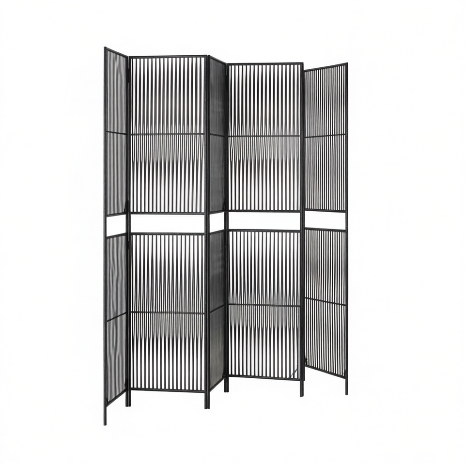 Separador de Ambientes de 6 Paneles de Mimbre Sintético Negro, Diseño Moderno Plegable Translúcido, Decoración para el Hogar