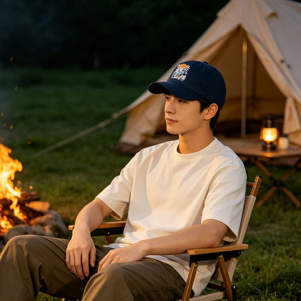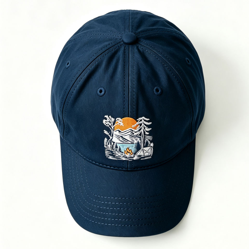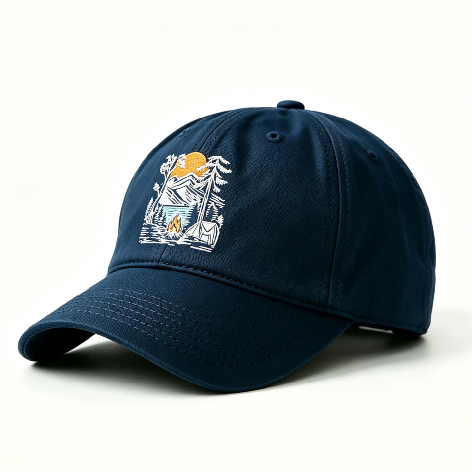 Gorra de Béisbol de 6 Paneles de Algodón con Bordado de Paisaje de Camping, Gorra de Sol Ligera y Transpirable para Senderismo, Correr y Deportes al Aire Libre