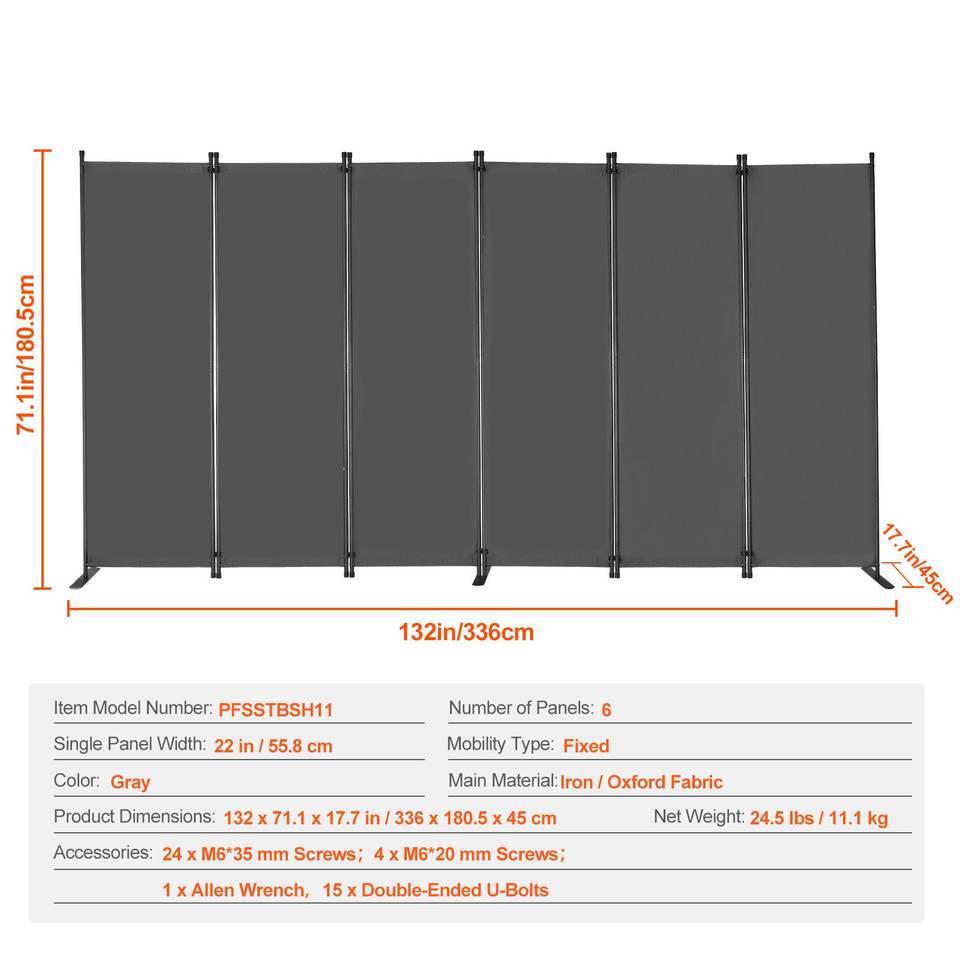Biombo Plegable de 6 Paneles, Separador de Habitaciones Portátil, Mampara Divisoria Independiente para Separar Ambientes