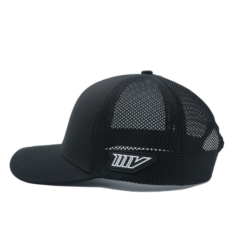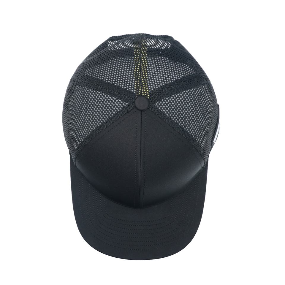 Gorra de béisbol trucker negra de malla de 6 paneles con bordado 3D de logotipo personalizado para ciclismo y actividades al aire libre con diseño lateral
