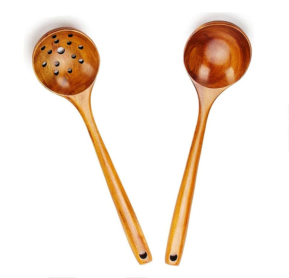 Juego de 6 uds. De los mejores utensilios de cocina de madera, Juego de 2 servidores de ensalada de madera, Juego de 2 servidores de ensalada de madera, KETCHENWAR ÚNICO HECHO A MANO