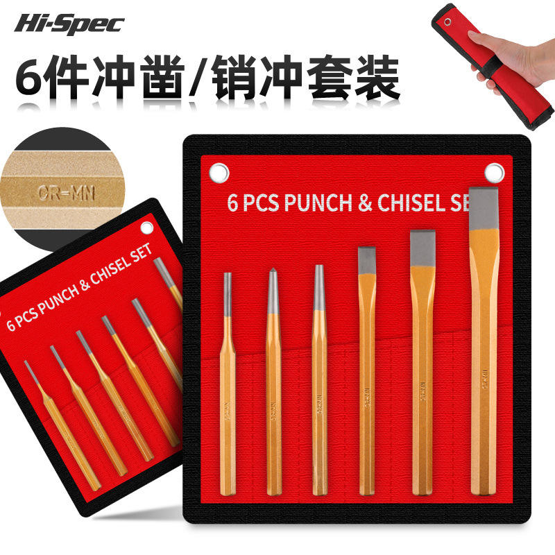 Juego de 6 piezas de punzones y cinceles con vástago redondo métrico y punta recta, juego de herramientas para albañilería de 20 mm