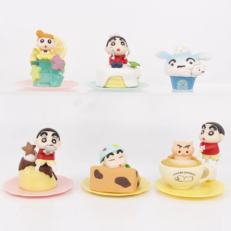 6 unids/set Crayon Shin Chan 7,5 cm figura postre Shinnosuke Himawa Shiro figurita modelo muñeca PVC Anime figura estatuas para chico