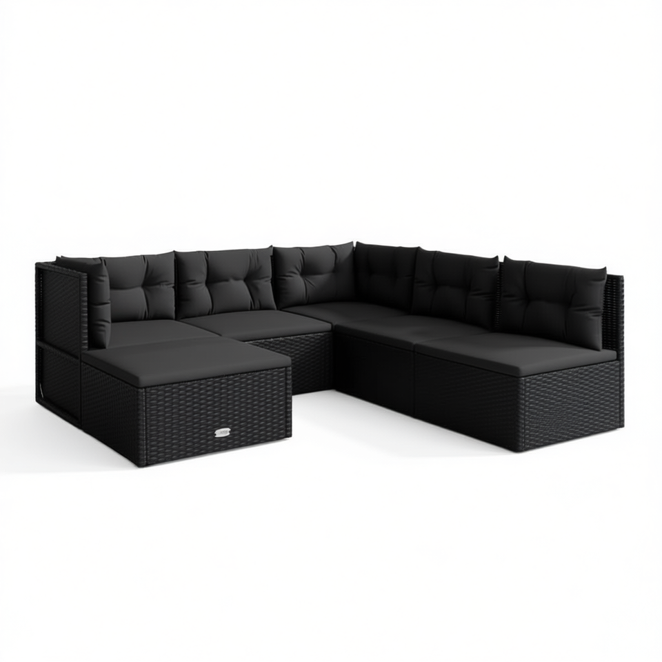 Conjunto de Muebles de Jardín de 6 Piezas en Ratán Sintético Negro con Cojines, Diseño Contemporáneo