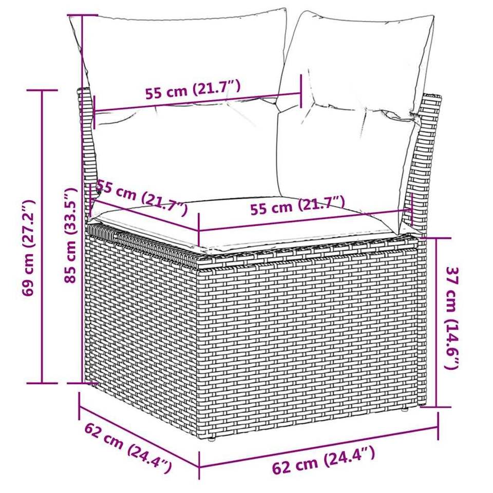 Juego de sofás de patio de ratán sintético gris de 6 piezas con cojines, muebles duraderos para exteriores