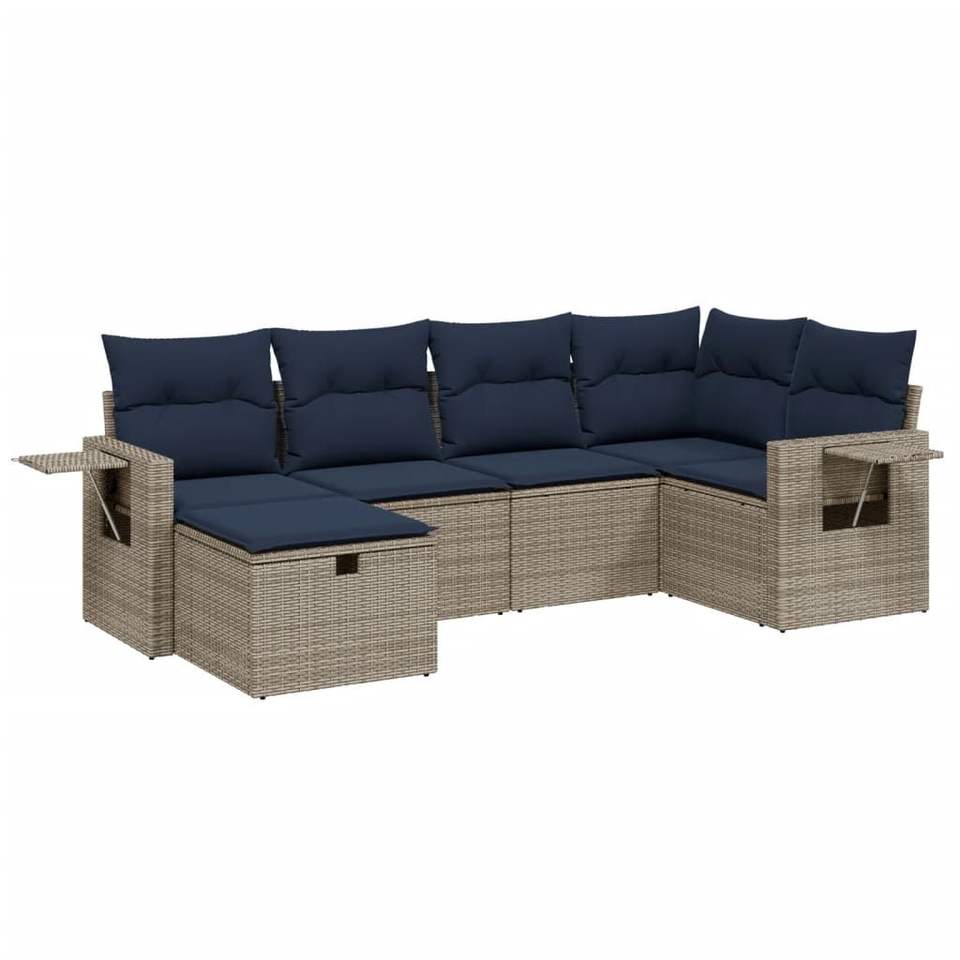 Juego de sofás de patio de ratán sintético gris de 6 piezas con cojines, muebles duraderos para exteriores