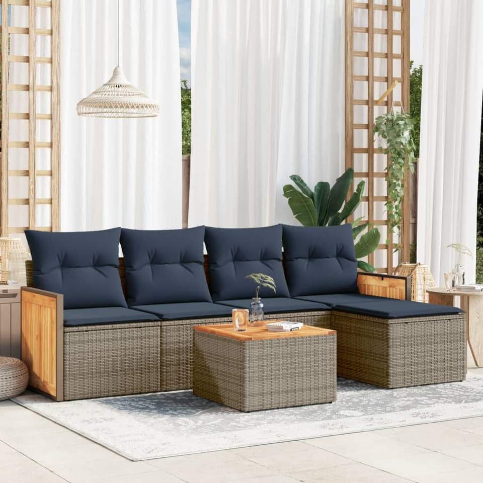 Juego de sofás de jardín de ratán sintético gris de 6 piezas con cojines
