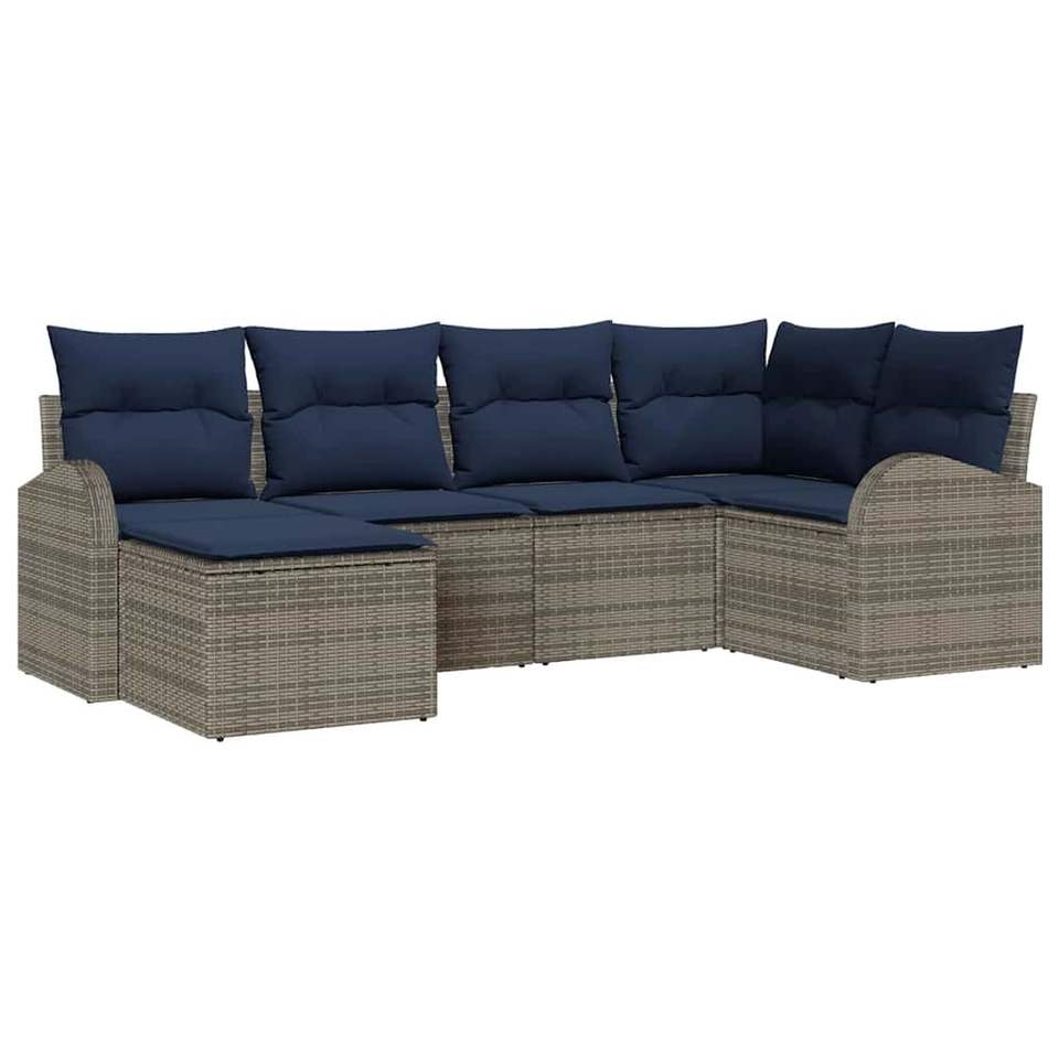 Juego de sofás de jardín de ratán sintético gris de 6 piezas con cojines