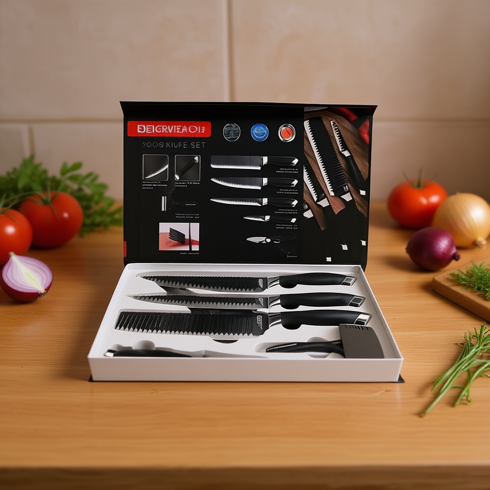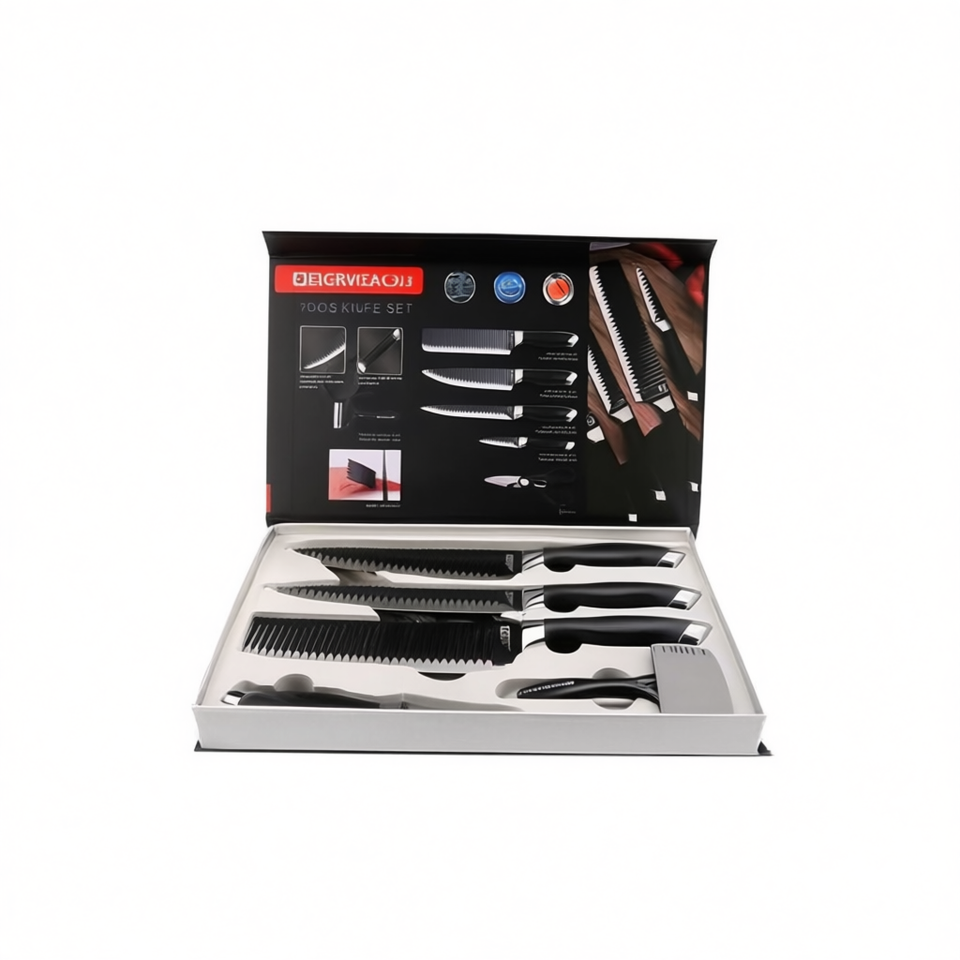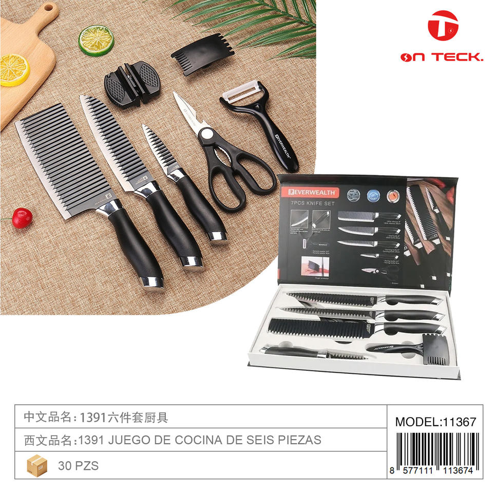 EIGRVIEAOJ Juego de cuchillos de 7 piezas, cuchillos de cocina de acero inoxidable con borde dentado y hojas afiladas para cocinar y preparar alimentos
