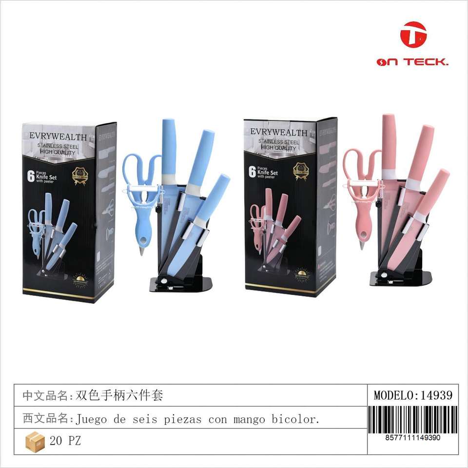 Juego de Cuchillos de 6 Piezas con Mango de Doble Color, Juego de Cuchillos Duradero de 6 Piezas con Mango de Doble Color, 14939