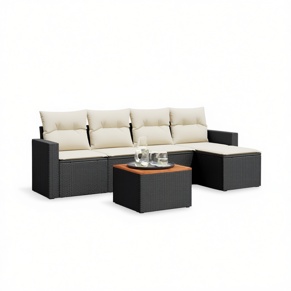 Conjunto de Sofás de Jardín de Mimbre Sintético para Exteriores, Color Negro, Modular, Contemporáneo, Impermeable, con Cojines de Espuma de Alta Densidad
