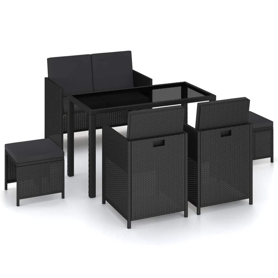 Juego de Comedor de Jardín de 6 Piezas en Ratán Sintético Negro