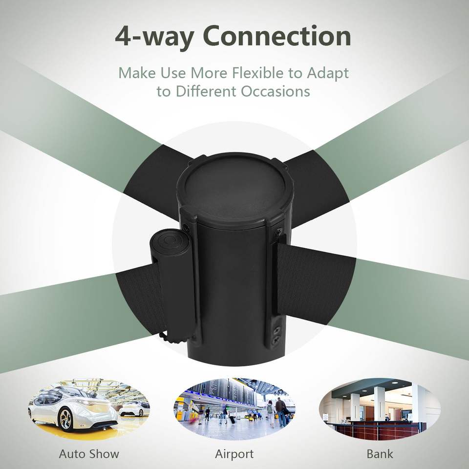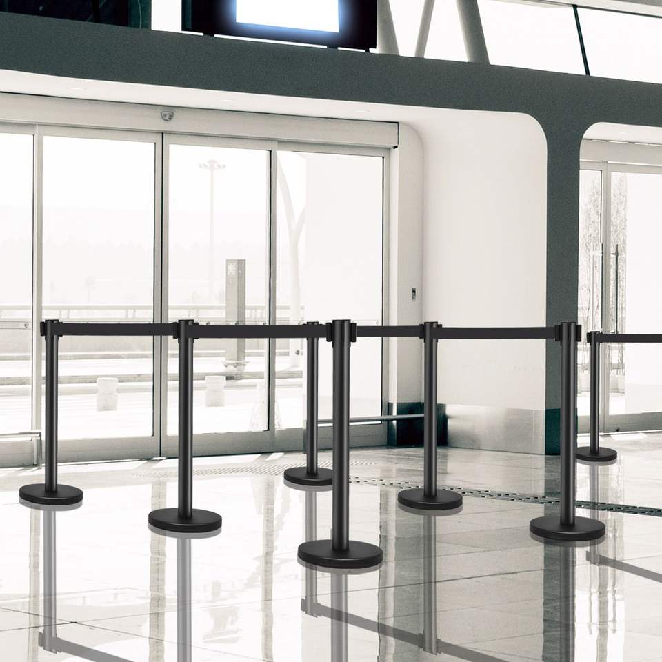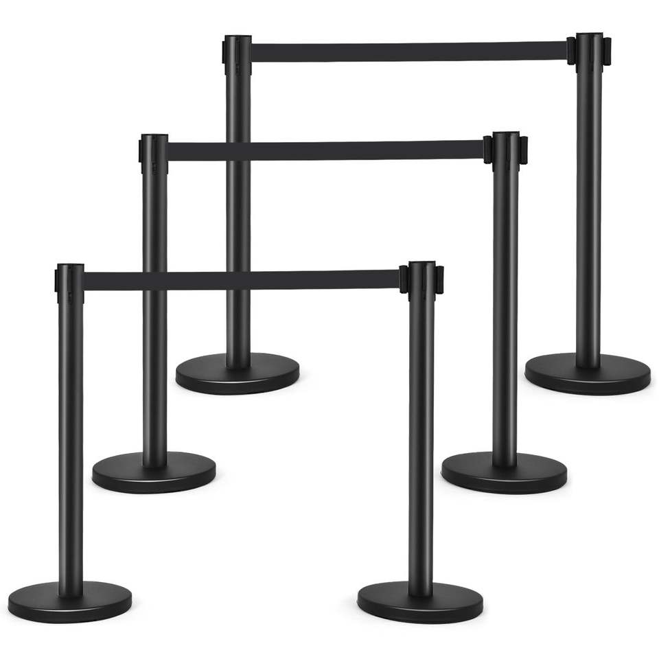 Juego de 6 Postes Retráctiles Negros para Filas con Cinturón Retráctil de 6.5 pies