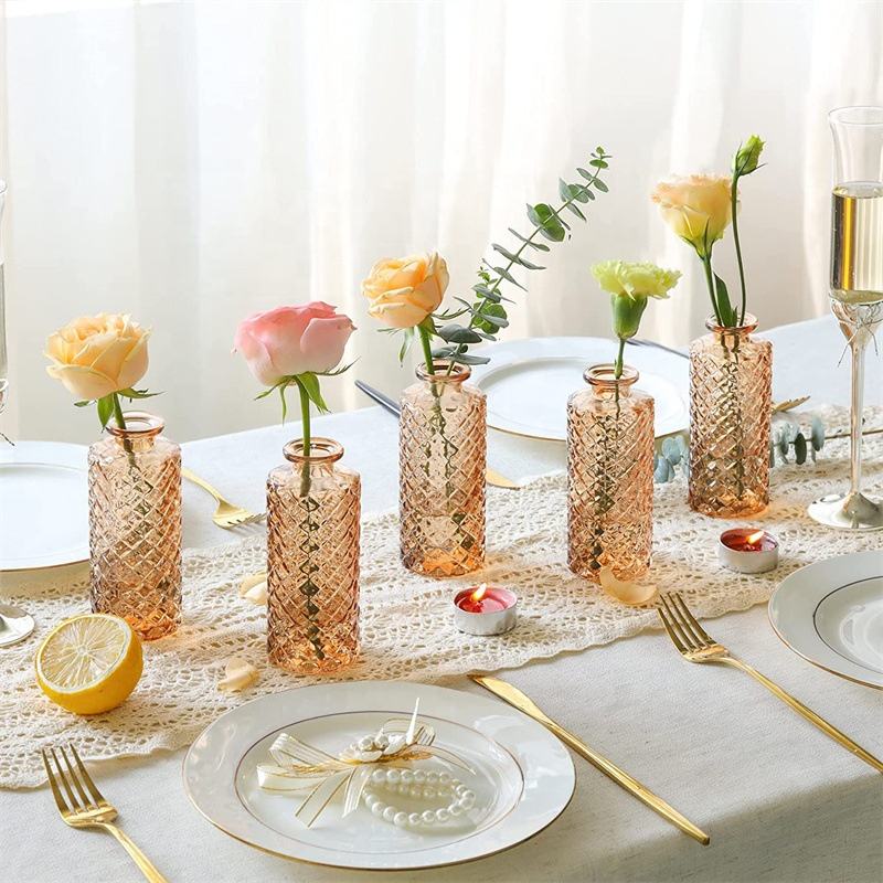 Jarrón de Vidrio Transparente Ámbar Cuadrado Pequeño de 6 Piezas, Decoración Moderna para el Hogar, Arreglo Floral, Jarrón Hidropónico de Escritorio, Jarrón para Bodas